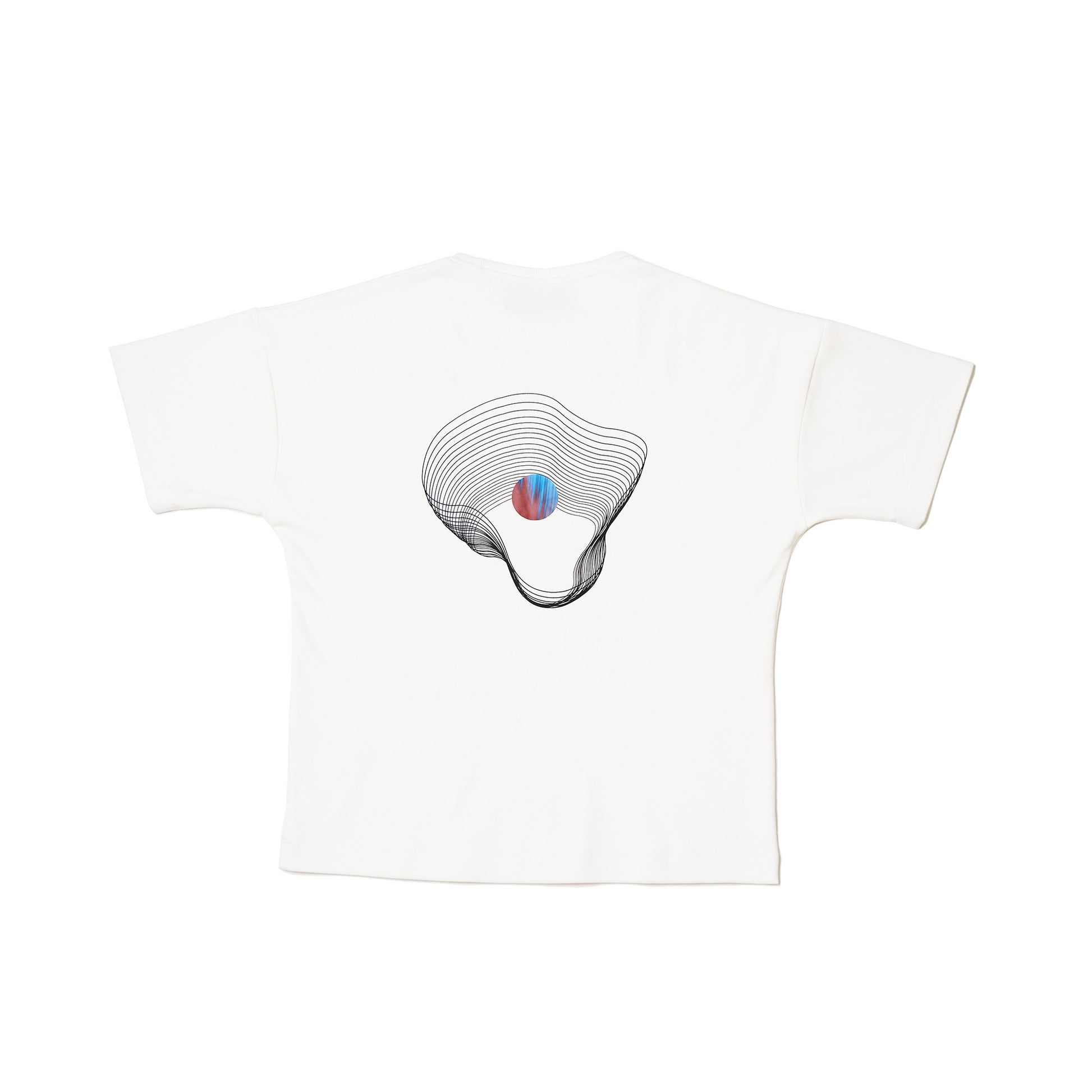 An oversized tee with a graphic screen print back detail, as well as a graphic chest print. The tee is crafted in 310gsm breath-able cashmere cotton jersey with an organic cotton neck rib. The fabric is undyed so the tee comes in its natural color. 92% organic cotton / 8% cashmere.